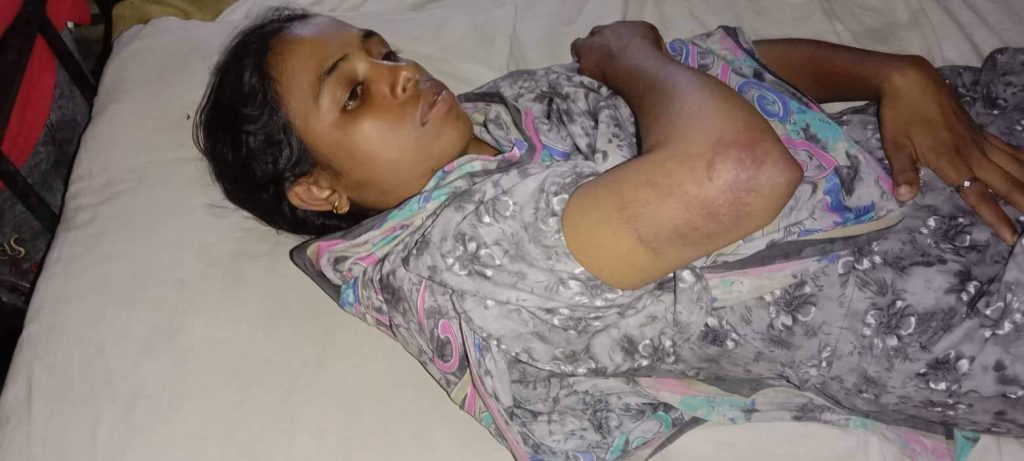 আহত খাদিজা (৩০) হলেন, ভারশোঁ ইউনিয়নের নিচ মহানগর গ্রামের রুবেল হোসেনের স্ত্রী।