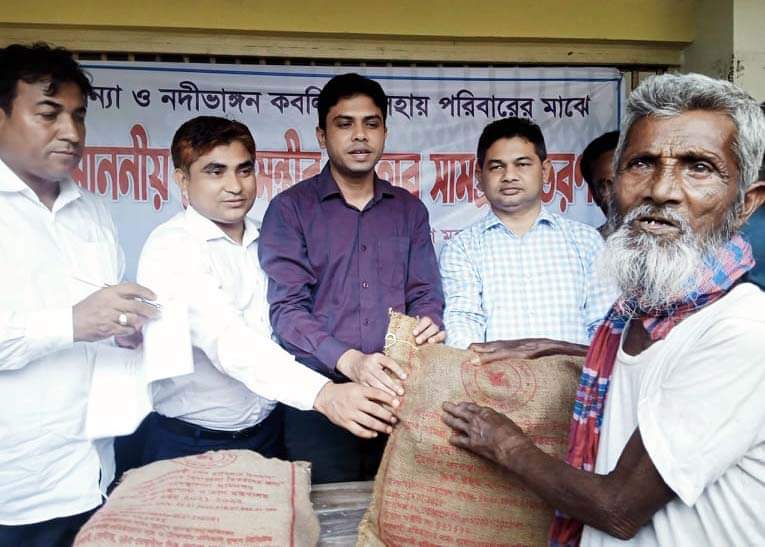 ব্রহ্মপুত্র নদী ভাঙ্গন কবলিত এলাকায় অসহায় পরিবারের মাঝে ত্রাণ সামগ্রী বিতরণ
