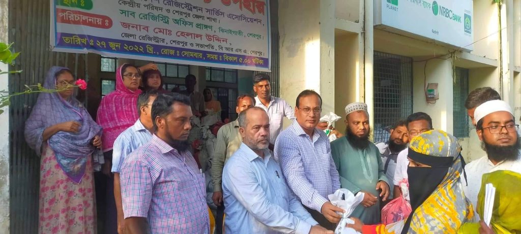 ঝিনাইগাতী সাব রেজিস্ট্রার অফিস প্রাঙ্গণে জেলা রেজিস্ট্রার ও সভাপতি বিআরএস‌এ শেরপুর এর সভাপতি মোঃ হেলাল উদ্দিন এর পরিচালনায় এসব উপহার সামগ্রী বিতরণ করা হয়।