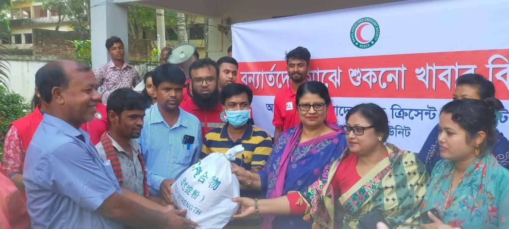 ঝিনাইগাতীতে রেডক্রিসেন্টের পক্ষথেকে বন্যার্তদের মাঝে শুকনো খাবার বিতরন