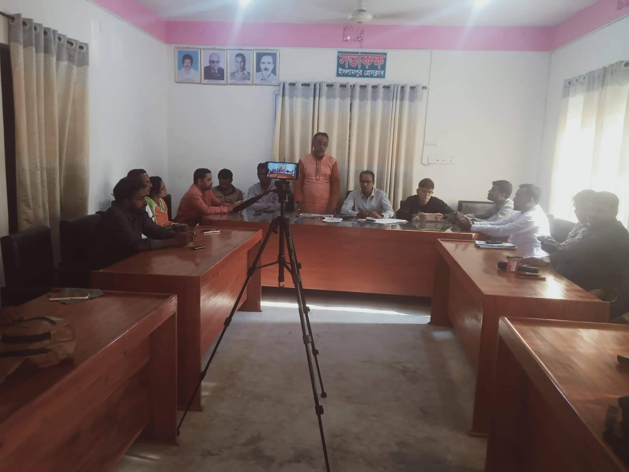 জামালপুরের ইসলামপুরে উপজেলা চেয়ারম্যান এস,এম জামাল আব্দুন নাসের বাবুল সাংবাদিকদের নিয়ে কু-মন্তব্যে করায় প্রেসক্লাবে প্রতিবাদ সভা অনুষ্ঠান অনুষ্ঠিত হয়েছে।