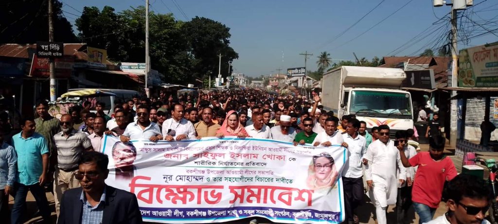 আওয়ামী লীগ নেতাকে মারধরের প্রতিবাদে বকশীগঞ্জ উপজেলা আওয়ামী লীগের সভাপতির বিরুদ্ধে বিক্ষোভ মিছিল ও সমাবেশ