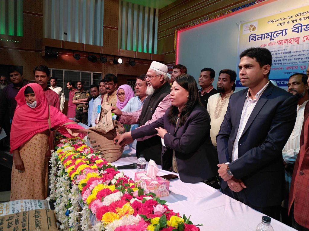 ১৮শ কৃষকের মাঝে ২০কেজি করে বারী-৩০জাতের গরম বীজ,১০কেজি করে ডিএমপি ও এমওপি সার বিনামূল্যে বিতরণ কার্যক্রম উদ্বোধন করেন।