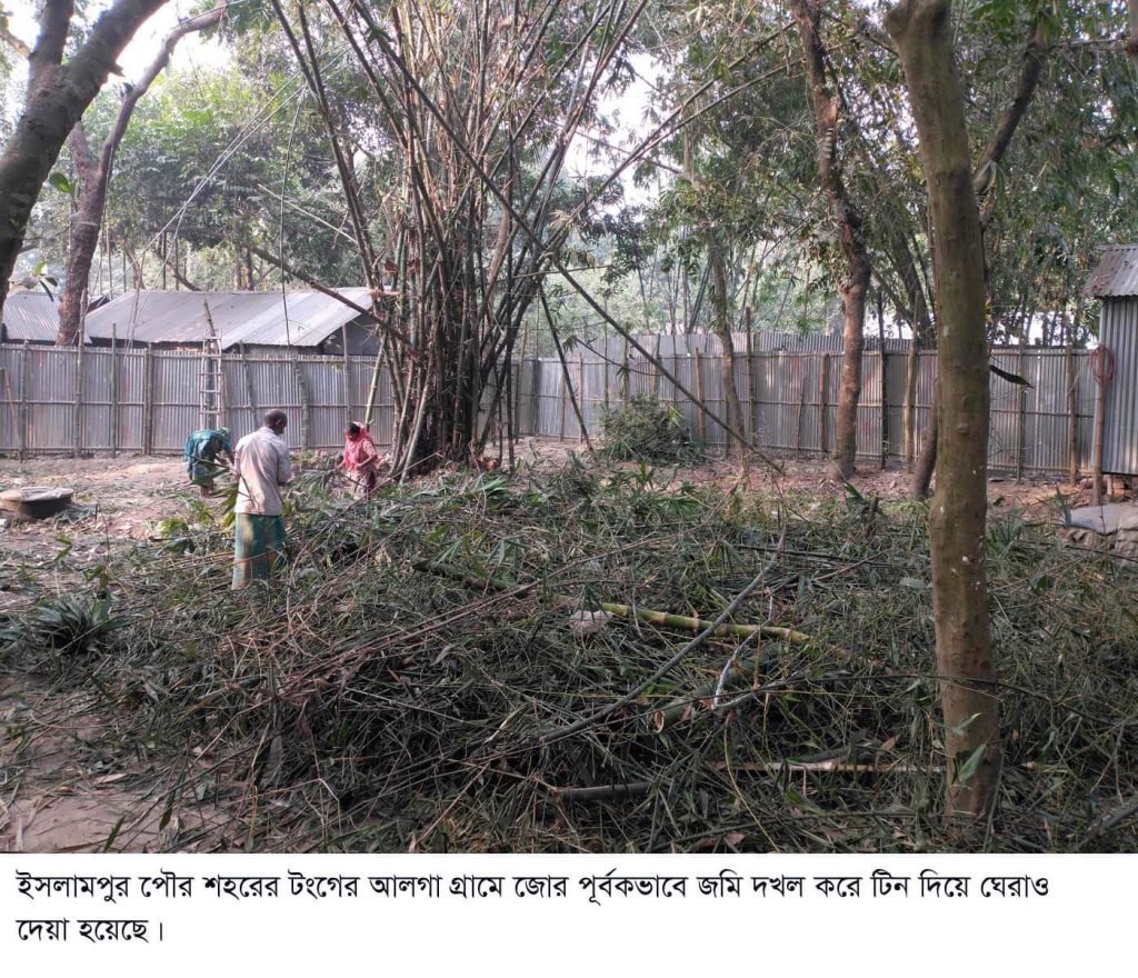 জামালপুরের ইসলামপুর পৌর শহরে টংগের আলগা গ্রামে জোর পূর্বকভাবে বসতভিটা জবর দখলের অভিযোগ পাওয়া গেছে।