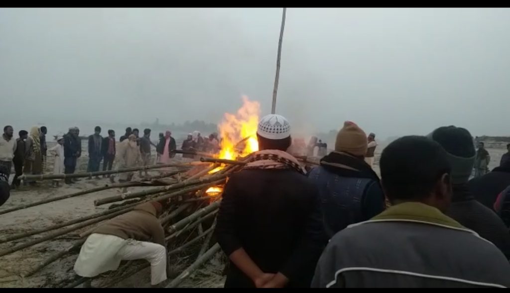 হয়ে যাত্রার প্যান্ডেল ভেঙ্গে আগুনে পুড়িয়ে দেয় তবে স্থানীয় পুলিশ প্রশাসনের কাউকে সেখানে দেখা