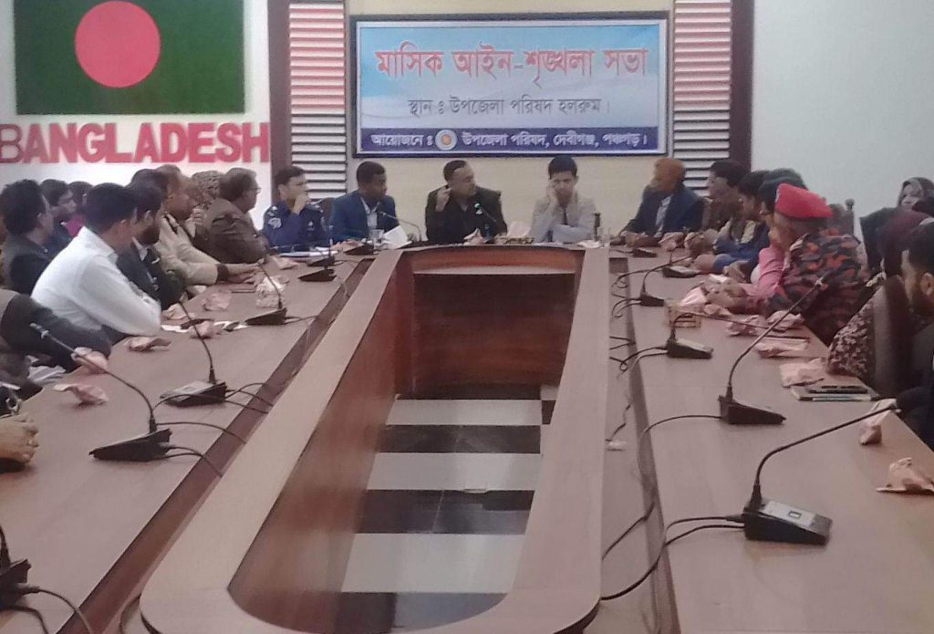 পঞ্চগড় জেলা দেবীগঞ্জ উপজেলার হল রুমে আইন শৃঙ্খলা আলোচনা সভা অনুষ্ঠিত হয়। উক্ত আলোচনা অনুষ্ঠানে উপস্থিত ছিলেন ,