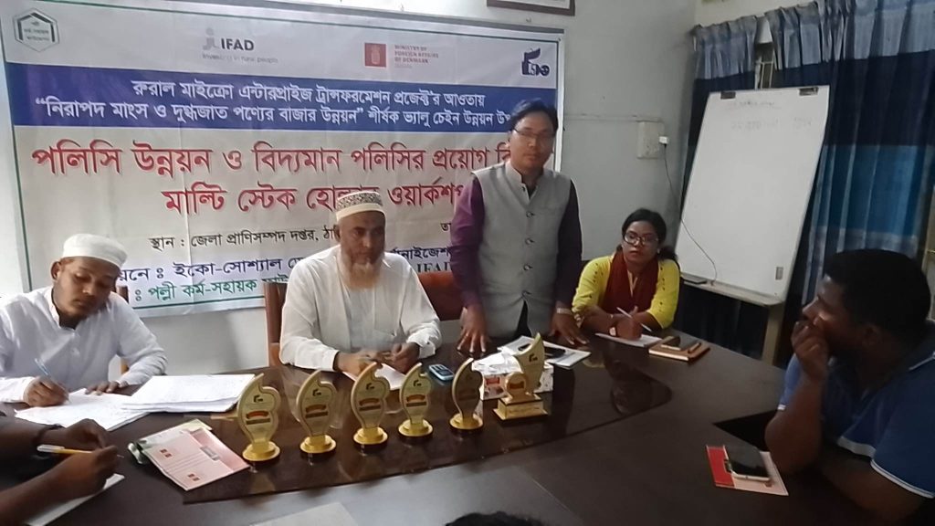 আলমগীর হোসেন , ঠাকুরগাঁও  প্রতিনিধিঃ বুধবার (১৫ মার্চ)  ইএসডিও কর্তৃক বাস্তবায়িত ইফাদ এবং পিকেএসএফ এর আর্থিক সহযোগিতায় পরিচালিত RMTP- “নিরাপদ মাংস ও দুগ্ধজাত পণ্যের বাজার উন্নয়ন উপ-প্রকল্প ” এর আওতায় মাল্টি স্টেক হোল্ডারদের নিয়ে পলিসি উন্নয়ন ও বিদ্যমান পলিসি প্রয়োগ বিষয়ক কর্মশালা জেলা প্রাণিসম্পদ দপ্তর,  ঠাকুরগাঁও হলরুমে অনুষ্ঠিত হয়।