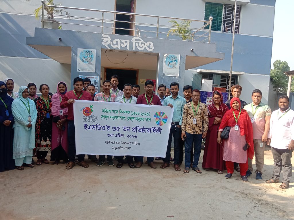“অবিরাম সাড়ে তিনদশক (১৯৮৮-২০২৩), তৃণমূল মানুষের সাথে: তৃণমুল মানুষের পাশে” এই শ্লোগানে সকালে জাতীয় পতাকা ও ইএসডিও পতাকা উত্তোলন, আলোচনা সভা,(বিকালে) দোয়া ও ইফতার মাহফিল। আলোচনা সভায় উপস্থিত ছিলেন। ইএসডিও’র রানীশংকৈল জোনের জোনাল ম্যানেজার আবু রায়হান , প্রেমদীপ প্রকল্পের ম্যানেজার খাইরুল আলম, ইডুকো ফান্ডেড প্রকল্পের পিসি শরিফুল ইসলাম (স্বাধীন), সহ রানীশংকৈল উপজেলা বাস্তবায়িত প্রকল্পের কর্মরত সকল উন্নয়ন কর্মীগণ ।