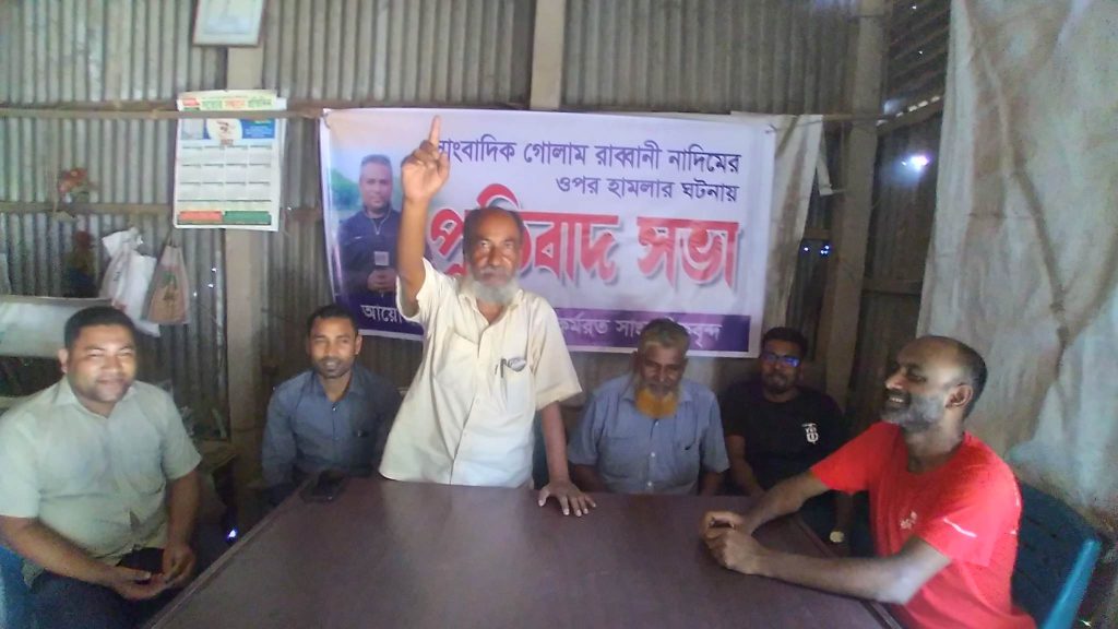 প্রতিবাদ সভায় উপজেলা প্রেস ক্লাব এর সিনিয়র সহসভাপতি জিএম সাফিনুর ইসলাম মেজর, সহসভাপতি আ: রাজ্জাক মাহমুদ , সাধারণ সম্পাদক জিএম ফাতিউল হাফিজ বাবু, যুগ্ন সাধারণ সম্পাদক এসএম আশরাফুল আজম, উপজেলা প্রেস ক্লাবের দপ্তর সম্পাদক আফজাল শরীফ, সাংবাদিক মনিরুজ্জামান লিমন উপস্থিত ছিলেন।
