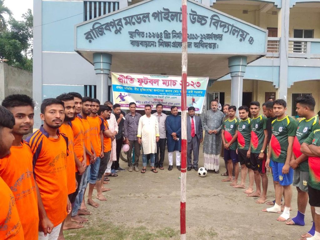 কুড়িগ্রামের রাজিবপুর উপজেলায় আজ ২৩ এপ্রিল রবিবার বিকালে রাজিবপুর সরকারি মডেল পাইলট উচ্চ বিদ্যালয় মাঠে রাজিবপুরের পাবলিক বিশ্ববিদ্যালয়ের শিক্ষার্থী বনাম জতীয় ও প্রাইভেট বিশ্ববিদ্যালয়ের শিক্ষার্থীদের মধ্যে প্রীতি ফুটবল ম্যাচ অনুষ্ঠিত হয়েছে।