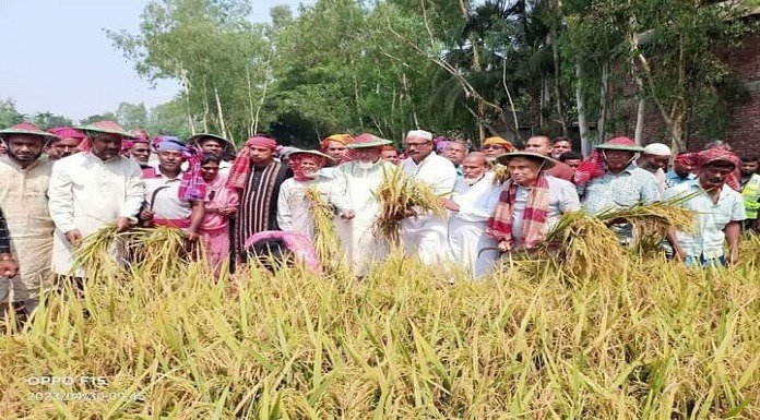 রবিবার (৩০ এপ্রিল) সকালে উপজেলা কৃষকলীগের আয়োজনে ইসলামপুর উপজেলার বেলগাছা ইউনিয়নের ধনতলা এলাকার হতদরিদ্র কৃষক মনু সেখ ও কানু সেখের দুই বিঘা জমির ধান নেতাকর্মীদের সাথে নিয়ে কেটে দেন তারা।