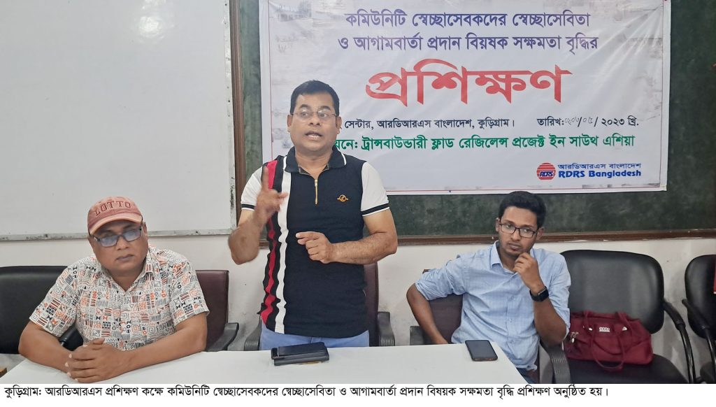 কুড়িগ্রামে বন্যার আগামবার্তা বিষয়ক স্বেচ্ছাসেবকদের নিয়ে দুইদিনব্যাপী প্রশিক্ষণ শুরু হয়েছে।