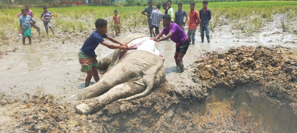 শনিবার সকালে স্থানীয় কয়েকজন কৃষক নুহু মিয়ার ধান ক্ষেতে একটি মৃত বন্যহাতি পড়ে থাকতে দেখেন।