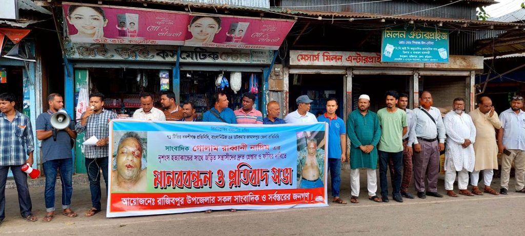 শনিবার (১৭ জুন) সকাল ১১ টার দিকে রাজিবপুর বাজার সুপার মার্কেটের সামনে এ মানববন্ধন অনুষ্ঠিত হয়। রাজিবপুর উপজেলায় কর্মরত সাংবাদিকদের আয়ােজনে কর্মসূচিতে অংশ নেন, রৌমারী প্রেসক্লাব, সানান্দবাড়ী প্রেসক্লাব, রাজিবপুর উপজেলার সকল সাংবাদিকসহ রাজিবপুরের সচেতন মহল।