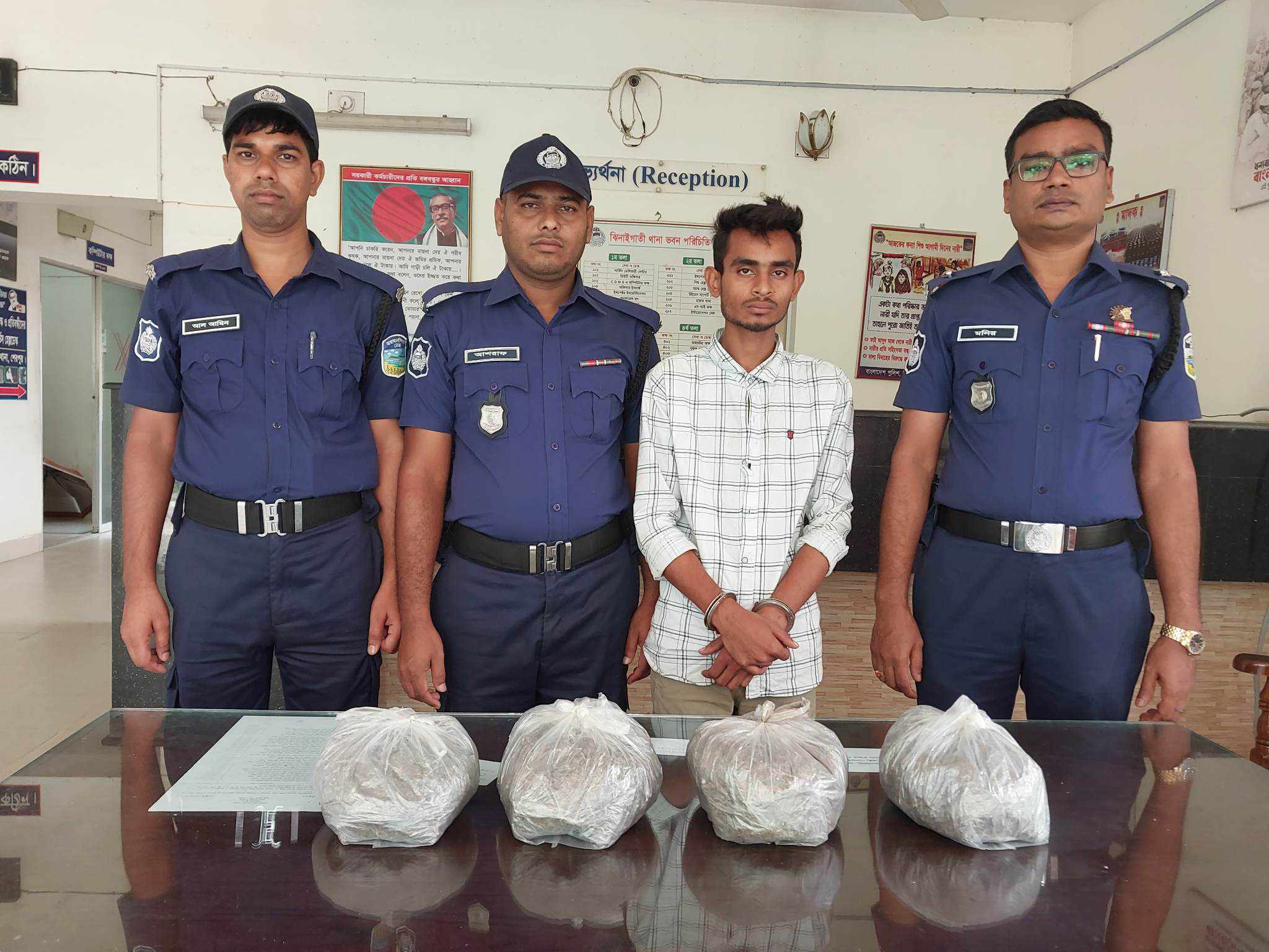 থানার সুত্রে জানা গেছে, গোপন সংবাদের ভিত্তিতে থানার অফিসার ইনচার্জ (ওসি) মো. মনিরুল আলম ভূঁইয়ার নির্দেশে এসআই মাসুদ রানা, এএসআই নাইমুন হাসান, মোজাম্মেল হক সহ সঙ্গীয় পুলিশ নিয়ে অভিযান চালিয়ে সোমবার দিবাগত রাত সাগে ৭ ঘটিকার সময় উপজেলার তিনানীর রাঙ্গামাটিয়ার মাঠখোলা এলাকা থেকে ২কেজি গাজা সহ রাশেল হাসানকে আটক করে থানায় নিয়ে আসা হয়।