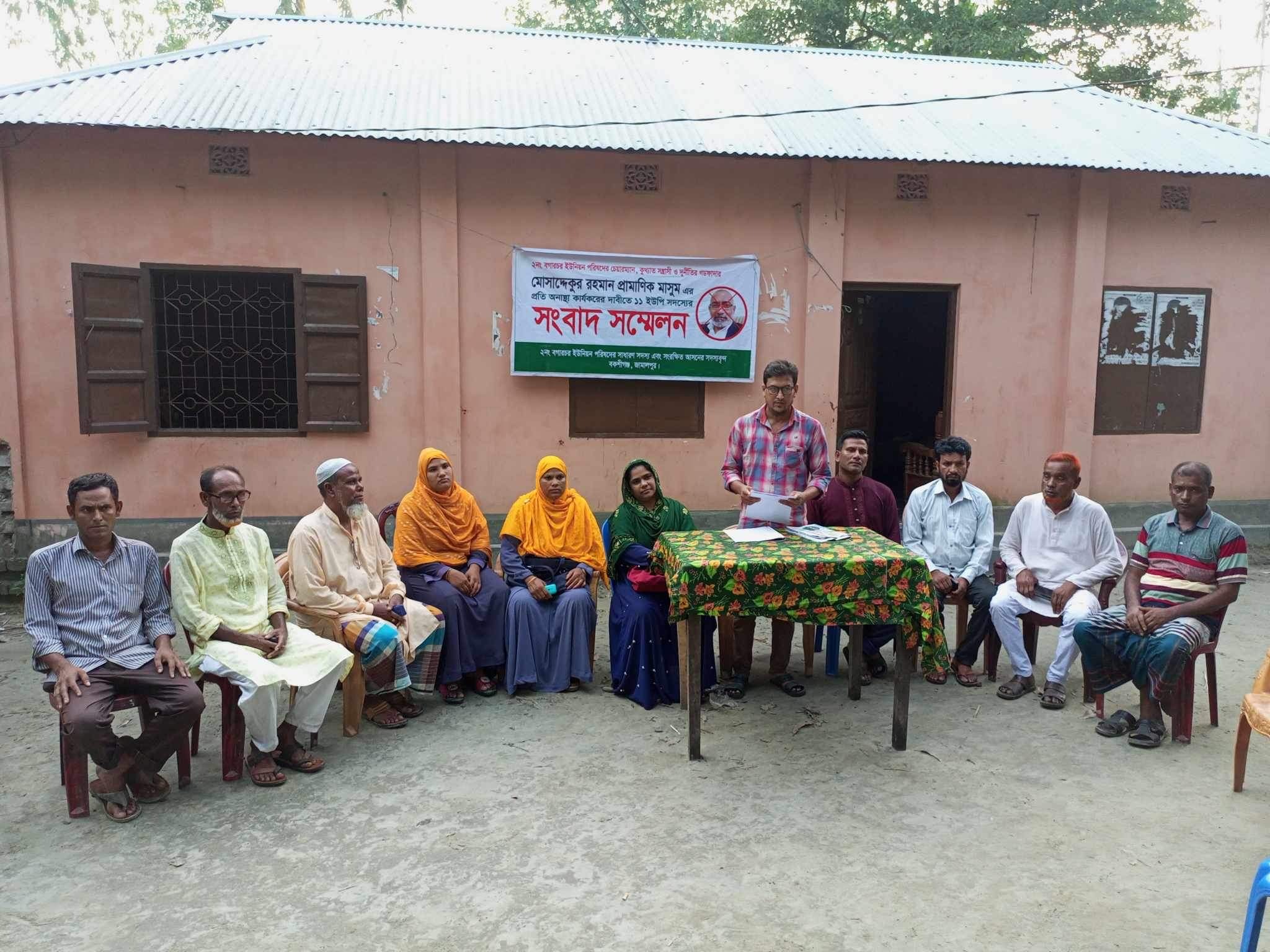 জামালপুর বকশীগঞ্জের বগারচর ইউনিয়ন পরিষদের চেয়ারম্যান মোসাদ্দেকুর রহমান প্রামাণিক মাসুমের বিরুদ্ধে সীমাহীন দুর্নীতি,ক্ষমতার অপব্যবহার, পেশি শক্তির দাপট, ভিজিএফ ও ভিজিডির মাল আত্মসাৎসহ বিভিন্ন অনিয়মের অভিযোগে চেয়ারম্যানের বহিস্কারের দাবিতে সংবাদ সম্মেলন করেছেন ১১ জন ইউপি সদস্য।