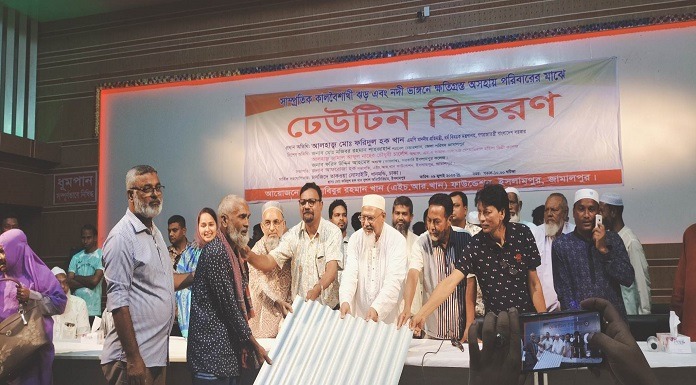 জামালপুরের ইসলামপুরে কালবৈশাখী ঝড়ে ক্ষতিগ্রস্ত এবং নদীর ভাঙ্গন অসহায় পরিবারের মাঝে হাবিবুর রহমান খান(এইচ আর খান ফাউন্ডেশন) এর উদ্যোগে ঢেউটিন বিতরণ অনুষ্ঠিত হয়েছে।