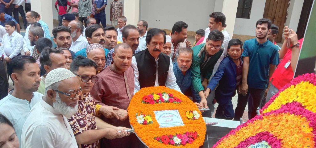প্রথমেই পুষ্পস্তবক অর্পণ করেন জাতীয় সংসদের হুইপ বীর মুক্তিযোদ্ধা আতিউর রহমান আতিক এমপি।