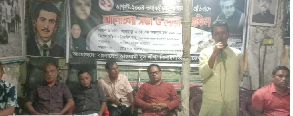 ২১আগষ্ট ভয়াবহ গ্রেনেড হামলার প্রতিবাদে শেরপুরের ঝিনাইগাতীতে আলোচনা ও দোয়া মাহফিল অনুষ্ঠিত হয়েছে।