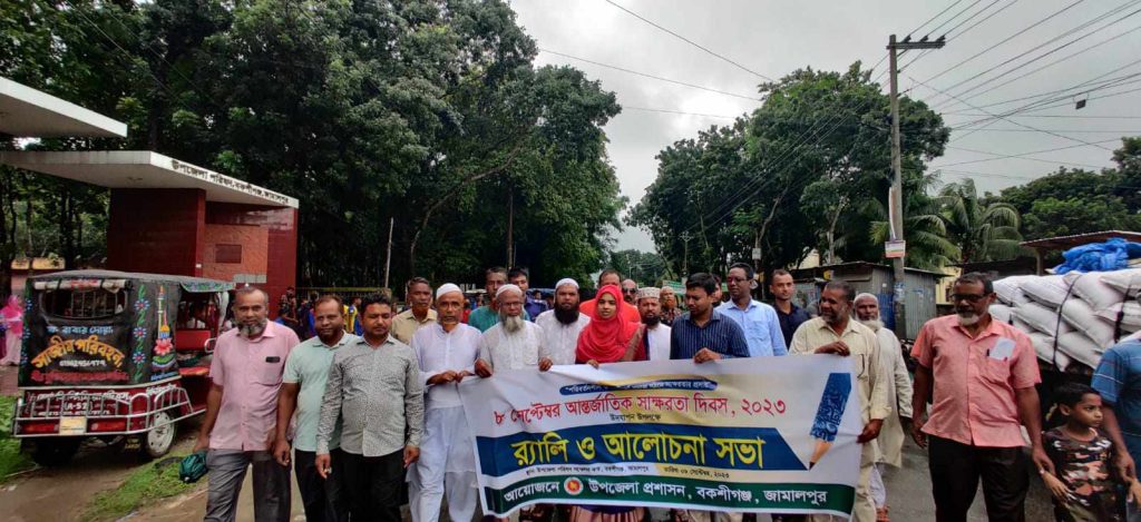 “পরিবর্তনশীল ও শান্তিপূর্ণ সমাজ গঠনের সাক্ষরতা প্রসার”এই প্রতিপাদ্যকে সামনে রেখে জামালপুরে বকশীগঞ্জে আন্তর্জাতিক সাক্ষরতা দিবস উপলক্ষে র্যালি ও আলোচনা সভা অনুষ্ঠিত হয়েছে।
