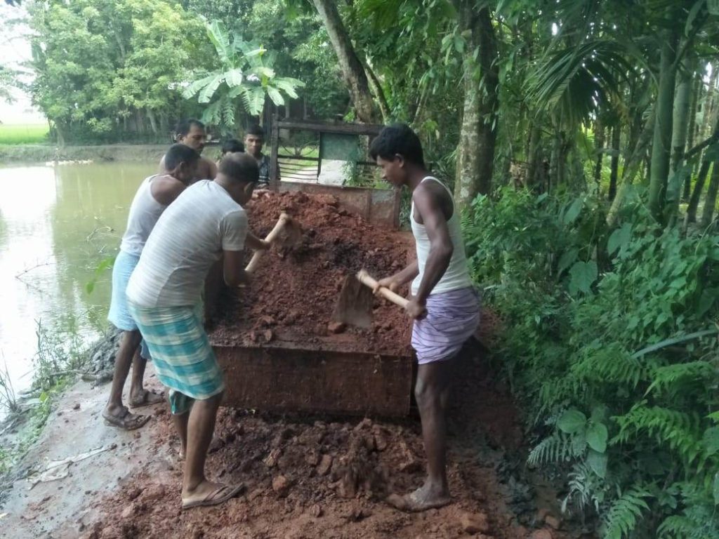 ইউএনওর নির্দেশে শুক্রবার ১৩ই অক্টোবর দুপুরে রাস্তাটিতে ইটের রাবিশ ফেলে জরুরী প্রয়োজনে চলাচলের উপযোগী করে দেন।
