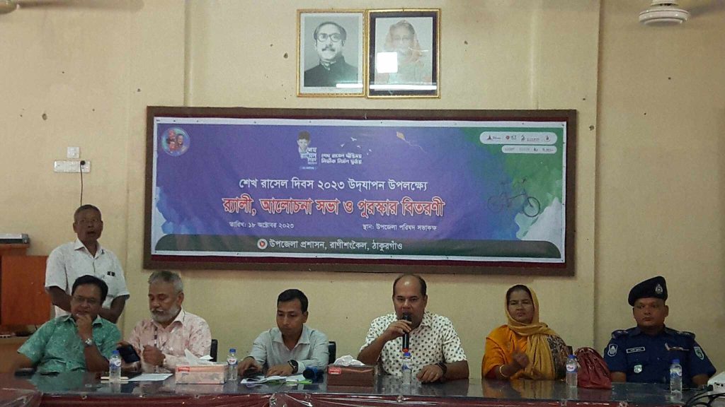ঠাকুরগাঁওয়ের রাণীশংকৈল উপজেলা প্রশাসনের আয়োজনে বুধবার (১৮অক্টোবর) সকাল ৯টায় রাণীশংকৈলে শেখ রাসেল দিবস উপলক্ষে শেখ রাসেল প্রতিকৃতিত্বে পুষ্পস্তবক অর্পণ, র্যালী ও উপজেলা পরিষদ সভাকক্ষে বিভিন্ন শিক্ষাপ্রতিষ্ঠানের শিক্ষার্থীদের নিয়ে আলোচনা সভা, কুইজ, চিত্রাংকন সহ বিভিন্ন প্রতিযোগিতায় বিজয়ীদের পুরস্কার বিতরণ করা হয়।