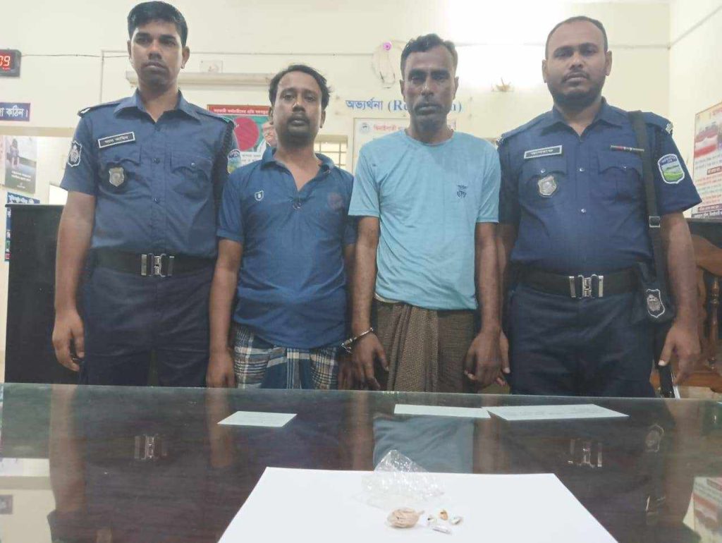 এসময় তাদের কাছে থাকা ২ গ্রাম হেরোইন উদ্ধার করা হয়। এ ব্যাপারে ঝিনাইগাতী থানায় মাদক দ্রব্য নিয়ন্ত্রণ আইনে মামলা দায়ের করা হয়েছে। ২৮ অক্টোবর শনিবার দুপুরে গ্রেফতারকৃতদের আদালতে সোপর্দ করা হয়েছে। উল্লেখ্য, এই দুইজনের নামে এর আগেও বেশ কয়েকটি মাদক মামলা রয়েছে বলে থানা সূত্রে জানা গেছে।