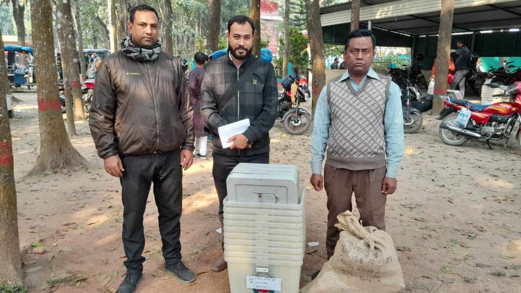৬ জানুয়ারি (শনিবার) দুপুরে বকশীগঞ্জ সহকারী রিটার্নিং কর্মকর্তার কার্যালয় থেকে প্রতিটি কেন্দ্রের প্রিজাইডিং অফিসারের হাতে ব্যালট বাক্স সহ সরঞ্জামাদী হস্তান্তর করা হয়।