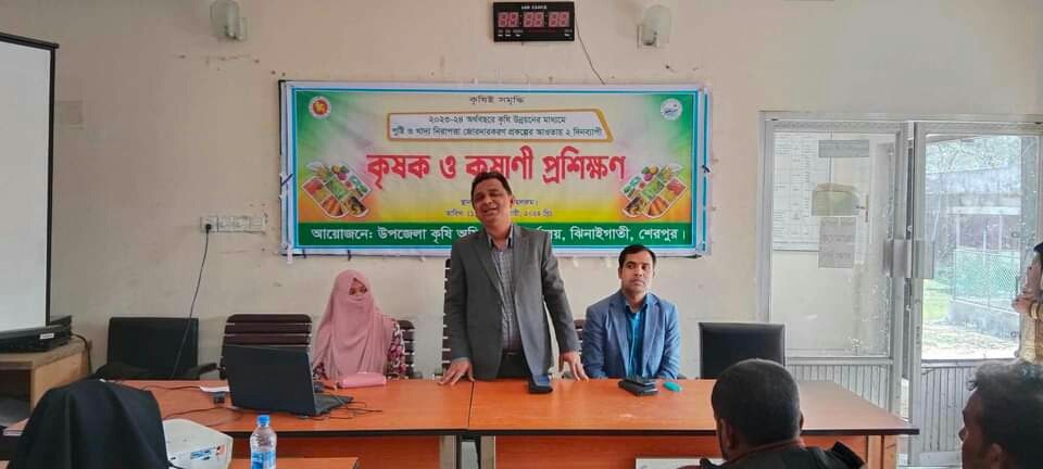 মোহাম্মদ দুদু মল্লিক শেরপুর প্রতিনিধিঃ “কৃষিই সমৃদ্ধি” এই প্রতিপাদ্যকে সামনে রেখে শেরপুরের ঝিনাইগাতী উপজেলা কৃষি অফিসের আয়োজনে ২০২৩-২৪অর্থবছরে কৃষি উন্নয়নের মাধ্যমে পুষ্টি ও খাদ্য নিরাপত্তা জোরদার প্রকল্পের আওতায় দুই দিনব্যাপী কৃষক-কৃষাণী প্রশিক্ষণ অনুষ্ঠিত হয়েছে। ১২ফেব্রুয়ারি সোমবার ছিল এ প্রশিক্ষণের শেষ দিন।সমাপনি দিবসে উপজেলা কৃষি কর্মকর্তা মো.হুমায়ুন দিলদার এর সভাপতিত্বে প্রধান অতিথি ও আলোচক হিসেবে আলোচনা করেন,পুষ্টি ও খাদ্য নিরাপত্তা জোরদার প্রকল্পের আঞ্চলিক সমন্বয়ক কৃষিবিদ আব্দুল্লাহ আল মামুন। এসময় অন্যান্যদের মাঝে অতিরিক্ত কৃষি অফিসার দিলরুবা আক্তার সহ ৬০জন কৃষক-কৃষাণী ও গণমাধ্যম কর্মিগণ উপস্থিত ছিলেন।দু’দিনব্যাপী এ প্রশিক্ষণে ৬০জন কৃষক-কৃষাণীকে পুষ্টি ও খাদ্য নিরাপত্তা বিষয়ে হাতে কলমে প্রশিক্ষণ প্রদান করেন স্থানীয় কৃষি অধিদপ্তরের বিভিন্ন কর্মকর্তাগণ।