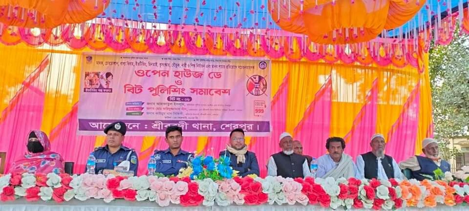 মোহাম্মদ দুদু মল্লিক শেরপুর প্রতিনিধিঃ শেরপুরের শ্রীবরর্দীতে মাদক,জুয়া,ইভটিজিং,বাল্যবিবাহ, যৌতুক,সাইবার অপরাধ এবং সামাজিক অবক্ষয় প্রতিরোধে ওপেন হাউজ ডে ও বিট পুলিশিং সমাবেশ অনুষ্ঠিত হয়েছে।১৩ ই ফেব্রুয়ারি মঙ্গলবার বিকেলে শ্রীবরদী থানার উদ্যোগে উপজেলার ৬ নং শ্রীবরদী সদর ইউনিয়নের দহেড়পাড় সরকারী প্রাথমিক বিদ্যালয় মাঠে এ সমাবেশ অনুষ্ঠিত হয়।এতে প্রধান অতিথি হিসেবে উপস্থিত থেকে দিক নির্দেশনামূলক বক্তব্য রাখেন শেরপুর জেলা পুলিশের অতিরিক্ত পুলিশ সুপার ক্রাইম এন্ড অ্যাপস মো আরাফাতুল ইসলাম,থানার ওসি কায়ুইম খান সিদ্দিকীর সভাপতিত্বে এতে বিশেষ অতিথি হিসেবে উপস্থিত ছিলেন সদর ইউনিয়নের চেয়ারম্যান মো:ফরিদুজ্জামান খান।এতে বক্তব্য রাখেন সাবেক ইউপি চেয়ারম্যান আব্দুল হালিম,ইউপি সদস্য মাহফুজুর রহমান মাফি,সহকারী শিক্ষক ইজ্জত আলী,সমাজ সেবক হেদায়েতুল ইসলাম প্রমুখ।উপ পুলিশ পরিদর্শক আরশাউল ইসলামের সঞ্চালনায় এ সময় অন্যেনের মধ্যে থানা সেকেন্ড অফিসার এসআই আখতারুজ্জামান,স্থানীয় আওয়ামী লীগ সভাপতি আব্দুস সাত্তার,কৃষক লীগ নেতা বনিজ উদ্দিন সহ গন্যমান্য ব্যক্তিবর্গ,বীর মুক্তিযোদ্ধা,শিক্ষক,
