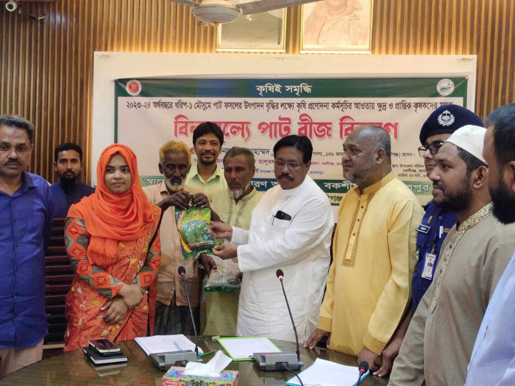জামালপুরের বকশীগঞ্জে ২০২৩-২০২৪ অর্থ বছরে খরিপ -১ মৌসুমে পাট ফসলের উৎপাদন বৃদ্ধির লক্ষ্যে কৃষি প্রণোদনা কর্মসূচির আওতায় ক্ষুদ্র ও প্রান্তিক কৃষকদের মাঝে পাট বীজ বিতরন করা হয়েছে ।
