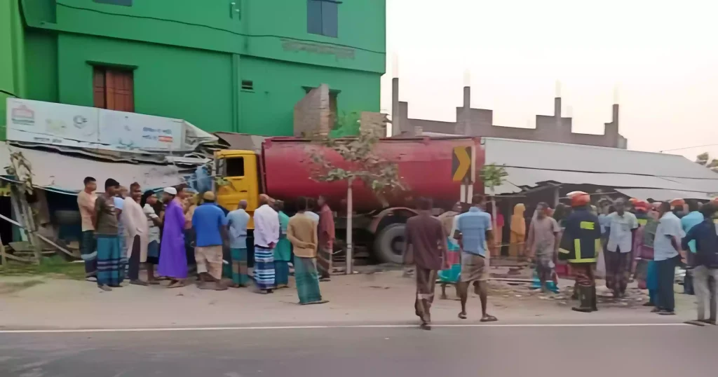আজ শনিবার (১১ মে) ভোর সোয়া ৫টার দিকে দুর্ঘটনাটি ঘটেছে৷ ট্যাংক লরিসহ চালক ও হেলপারকে আটক করেছে কোতোয়ালি থানা পুলিশ। কোতোয়ালি থানার ভারপ্রাপ্ত কর্মকর্তা ফরিদ হোসেন বলেন, ফুলবাড়ী উপজেলা হয়ে একটি ট্যাংক লরি গন্তব্যে যাওয়ার সময় জেলা সদরের কাউগাঁ মোড়ে সকাল সোয়া ৫টার দিকে চালক নিয়ন্ত্রণ হারান। এ সময় লরিটি রাস্তার পাশে আব্দুস সোবহান নামের একজনের চায়ের দোকানে ঢুকে পড়ে।