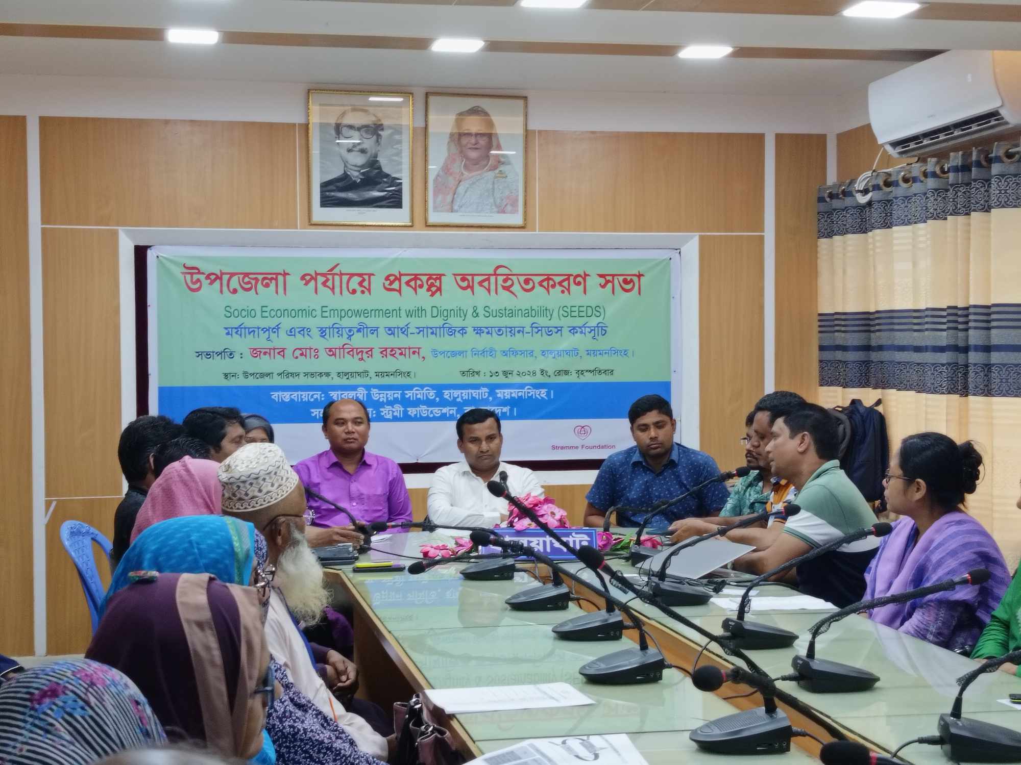স্বাবলম্বী উন্নয়ন সমিতি’র ‘মর্যাদার্পূণ ও স্থায়িত¦শীল এবং আর্থ-সামাজিক ক্ষমতায়ন সিডস কর্মসূচি’ র প্রকল্প অবহিতকরণ সভায় উপজেলা নির্বাহী অফিসার মোঃ আবিদুর রহমানের সভাপতিত্বে প্রকল্প মনিটরিং কর্মকর্তা ম্যাগডেলিন তজু অবহিতকরণ সভা সঞ্চালনায়।