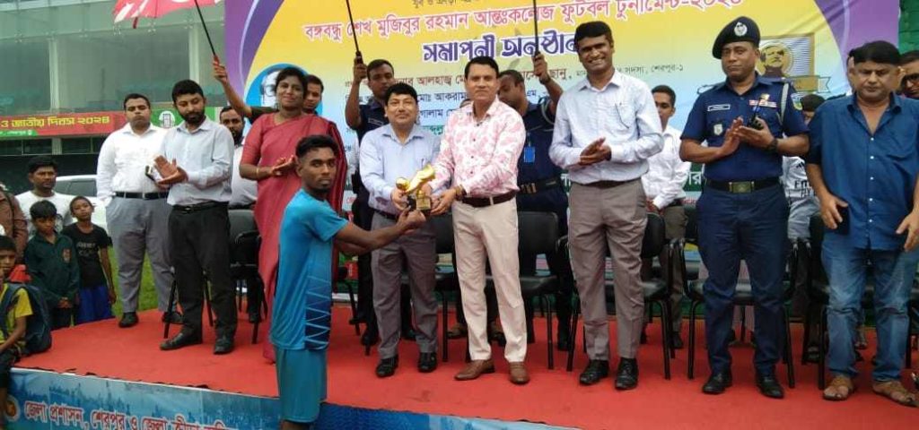 শেরপুরে যুব ও ক্রীড়া মন্ত্রণালয়ের উদ্যোগে জেলা পর্যায়ে বঙ্গবন্ধু শেখ মুজিবুর রহমান আন্তঃকলেজ ফুটবল টুর্নামেন্ট এর ফাইনাল খেলা অনুষ্ঠিত হয়েছে।