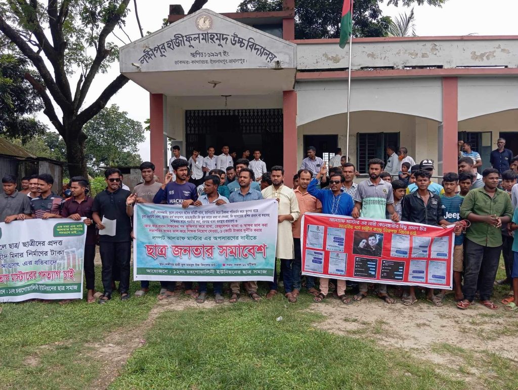 রবিবার (১৮আগস্ট) সকালে স্কুলের ছাত্র-ছাত্রী ও অভিভাবক স্থানীয় এলাকাবাসী সহ ওই শিক্ষকের অপসারনের দাবিতে সমাবেশ করে। লক্ষীপুর হাজী ফুল মাহমুদ উচ্চ বিদ্যালয়ের প্রধান শিক্ষকের অনিয়ম ও দুর্নীতির বিষয়ে উপজেলা নির্বাহী কর্মকর্তা জেলা শিক্ষা অফিসার (ডিইও) বরাবর লিখিত অভিযোগ দায়ের করেছেন প্রতিষ্ঠানের প্রতিষ্ঠাতা জুলফিকার রহমান সাঈদ।