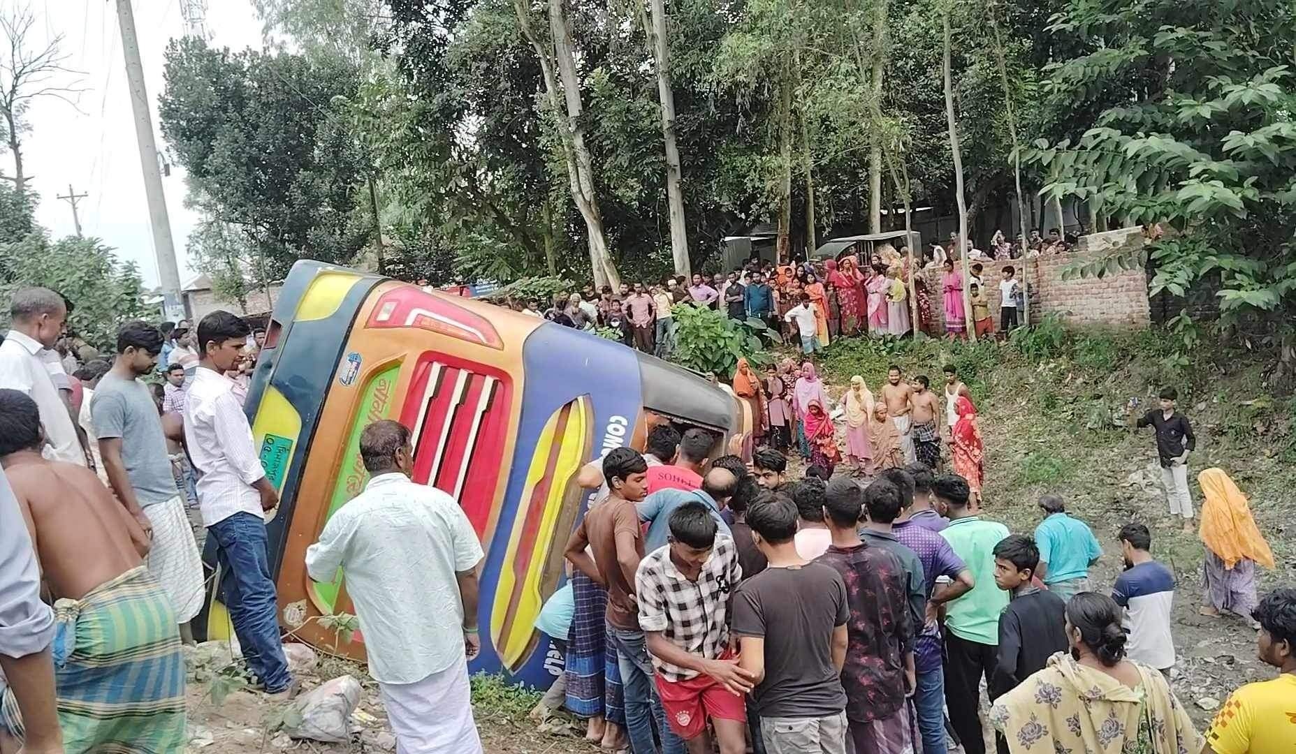 মোটরসাইকেল আরোহীকে বাঁচাতে গিয়ে বাস খাদে, আহত ১০