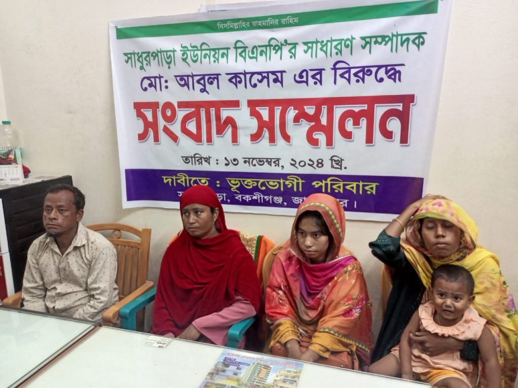 সেলিম মিয়ার স্ত্রী খোদেঁজা বেগম সংবাদ সম্মেলনে বলেন,সাধুরপাড়ার গাজীরপাড়া বাজারে তাদের ছোট্ট একটি চায়ের দোকান রয়েছে। স্বামী সেলিম মিয়ার সাথে চা দোকান করে সংসার চালান তারা। দীর্ঘদিন যাবত প্রতিবেশী আসাদুল্লাহ গংদের সাথে বসতভিটার আড়াই শতক জমি নিয়ে তাদের বিরোধ চলে আসছে। গত দুই সপ্তাহ আগে জমি সংক্রান্ত বিরোধ নিস্পত্তির কথা বলে সেলিম মিয়ার কাছে ২ লাখ টাকা চাঁদা দাবি করেন ইউনিয়ন বিএনপির সাধারণ সম্পাদক আবুল কাসেম। কাসেম বলেন প্রতিটি ইউনিয়নে আওয়ামীলীগের নেতাকর্মীদের বিরুদ্ধে নাশকতা মামলা হচ্ছে। সাধুরপাড়া ইউনিয়নেও মামলা হবে। টাকা না দিলে মামলায় আসামী হবে সেলিম এবং জমির দ্বন্ধ কোনদিন নিরসন হবে না। আবুল কাসেম এর কথামত টাকা দিতে অপারগতা প্রকাশ করেন সেলিম মিয়া। টাকা না দেওয়ায় সেলিমের উপর ক্ষিপ্ত হন বিএনপি নেতা আবুল কাসেম। গত ১০ নভেম্বর রাত আনুমানিক দুইটার দিকে নিজ বাড়ি থেকে সেলিম মিয়াকে ধরে নিয়ে যায় পুলিশ। স্ত্রীর অভিযোগ পুলিশের সাথে আবুল কাসেমও ছিল। পরেরদিন সকালে সাধুরপাড়া ইউনিয়ন বিএনপি নেতা শাহা আলমের দায়েরকৃত নাশকতা মামলায় অজ্ঞাতানামা আসামী হিসেবে সেলিম মিয়াকে আদালতে পাঠানো হয়। আদালত তার জামিন না মঞ্জুর করে কারাগারে পাঠানোর নির্দেশ দেন। তার দাবি সেলিম মিয়া কোন রাজনীতি করে না। চায়ের দোকান করে সংসার চালায়।  টাকা না দেওয়ার কারনেই তাকে মিথ্যা মামলায় ফাঁসানো হয়েছে। ন্যায় বিচারের জন্য জামালপুর-১ আসনের সাবেক এমপি কেন্দ্রীয় বিএনপির কোষাধ্যক্ষ এম রশিদুজ্জামানের মিল্লাতের হস্তক্ষেপ কামনা করেন তিনি। সংবাদ সম্মেলনে সেলিম মিয়ার ভাই মজিবুর রহমান,মেয়ে সোনিয়া আক্তার,সুমাইয়া আক্তার সহ পরিবারের সদস্যরা উপস্থিত ছিলেন।