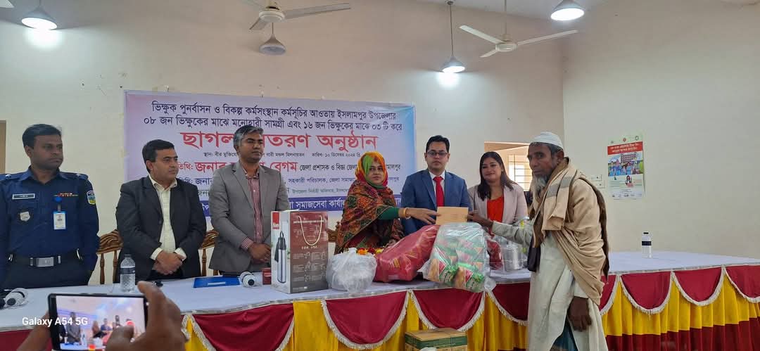 ইসলামপুরে ভিক্ষুকদের মাঝে মনোহারী সামগ্রী ও ছাগল বিতরণ