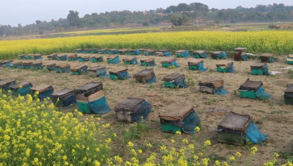 সরে জমিনে দেখা যায়, সরিষা ক্ষেতের পাশে সারি সারি বসানো হয়েছে মৌমাছির বাক্স। সকাল থেকে সন্ধ্যা পর্যন্ত মৌচাষীরা এসব বাক্স থেকে মধু সংগ্রহে ব্যস্ত। তারা জানান, এই সময়ে সরিষা ফুলের মধুর চাহিদা সবচেয়ে বেশি। কারণ, এর স্বাদ এবং মান অত্যন্ত উন্নত।