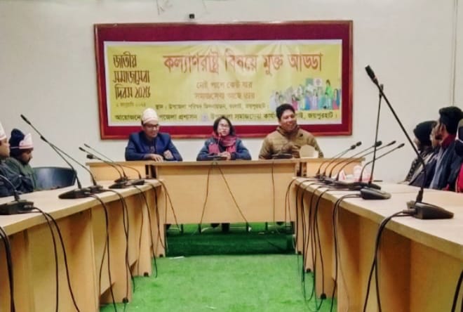 সিনিয়র স্টাফ রিপোর্টার রামবাবু বর্মনঃ জয়পুরহাটের কালাই উপজেলা সমাজসেবা কার্যালয়ের সামনে থেকে ২ জানুয়ারি ২০২৫ বৃহস্পতিবার সাড়ে ১০ টায় "নেই পাশে কেউ যার, সমাজসেবা আছে তার " এ প্রতিপাদ্য সামনে রেখে বিশাল একটি রালি বের হয়ে প্রধান প্রধান রাস্তা প্রদক্ষিণের শেষে উপজেলা পরিষদ মিলনায়তনে গিয়ে উপজেলা নির্বাহী অফিসার জনাব শামীমা আক্তার জাহানের সভাপতিত্বে জাতীয় সমাজসেবা দিবস উদযাপন ও কল্যাণ রাষ্ট্র বিষয়ে মুক্ত আড্ডার ওতাৎপর্য তুলে ধরে আলোচনা সভা অনুষ্ঠিত হয়। স্বাগত বক্তব্য রাখেন উপজেলা সমাজসেবা অফিসার ( অতিরিক্ত দায়িত্বপ্রাপ্ত) মোয়াজ্জেম হোসেন। তারপর অন্যান্যর মধ্যে থেকে বক্তব্য রাখেন উপজেলা কৃষি অফিসার কৃষিবিদ অরুণ চন্দ্র রায়, উপজেলা স্বাস্থ্য অফিসার আল আমিন, কালাই মডেল প্রেসক্লাবের সভাপতি লুৎফর রহমান ও কালাই উপজেলা বৈষম্য বিরোধী ছাত্র আন্দোলন প্রতিনিধি তানিন সরকার সহ আরো অনেকে। এ সময় সরকারি বিভিন্ন দপ্তরের অফিসার, উপজেলা সমাজসেবা অফিসের কর্মচারী, প্রকল্প গ্রামের সদস্যবৃন্দ, শিক্ষার্থীবৃন্দ ও সাংবাদিকগণ অত্র আলোচনা সভায় উপস্থিত ছিলেন। সভাপতি ইউএনও মহোদয় সমাপনী বক্তব্যের মাধ্যমে বলেন আমার আশা এবং কামনা দেশে কল্যাণ রাষ্ট্র দ্রুত গঠিত হোক এতে দেশের মানুষ কল্যাণ রাষ্ট্র থেকে সুফল পেয়ে দেশ ও জাতির উন্নয়ন ঘটবে এবং দেশ সামনের দিকে এগিয়ে যাবে। পরিশেষে সবাইকে ২০২৫ সাল নতুন বছরের প্রীতি ও শুভেচ্ছা জানিয়ে আলোচনা সভার সমাপ্তি ঘোষনা করেন। রাজিবপুরে দারুল আরকাম ইবতেদায়ী মাদ্রাসায় বই বিতরণী অনুষ্ঠানে শিক্ষার্থীদের মাঝে আনন্দের বন্যা