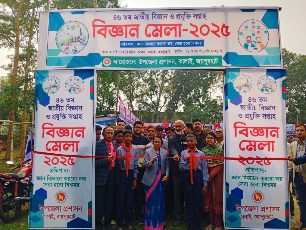 শ্রী রামবাবু বর্মন সিনিয়র স্টাফ রিপোর্টারঃ জয়পুরহাটের কালাই উপজেলার কালাই সরকারি মহিলা কলেজ মাঠে ৪৬ তম জাতীয় বিজ্ঞান ও প্রযুক্তি সপ্তাহ, ৯ম বিজ্ঞান অলিম্পিয়াড এবং বিজ্ঞান মেলা সফলভাবে সম্পন্ন চলছে,