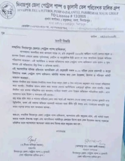 বৈঠকের পর রাতে রাজশাহী ও রংপুর বিভাগীয় পেট্রল পাম্প মালিক সমিতির সভাপতি এবং কেন্দ্রীয় মহাসচিব মিজানুর রহমান রতন, সাধারণ সম্পাদক আব্দুল জলিল স্বাক্ষরিত এক প্রেস বিজ্ঞপ্তিতে গণমাধ্যমে পাঠানো হয়। বৈঠক শেষে উত্তরবঙ্গ ট্যাংক-লরি শ্রমিক ইউনিয়নের সভাপতি আজিজুর রহমান এ ঘোষণা দেন।
