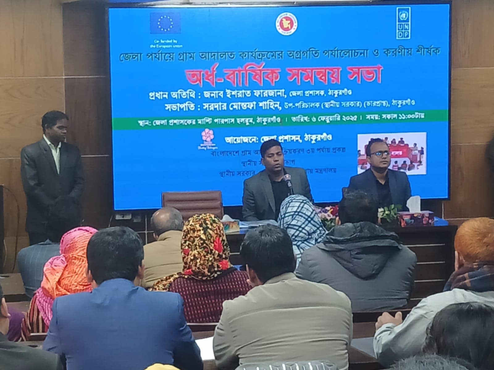 আলমগীর হোসেন ঠাকুরগাঁও প্রতিনিধিঃ ঠাকুরগাঁওয়ে জেলা পর্যায়ে গ্রাম আদালত কার্যক্রমের অগ্রগতি পর্যালোচনা ও করণীয় শীর্ষক অর্ধ-বার্ষিক সমন্বয় সভা অনুষ্ঠিত হয়েছে।