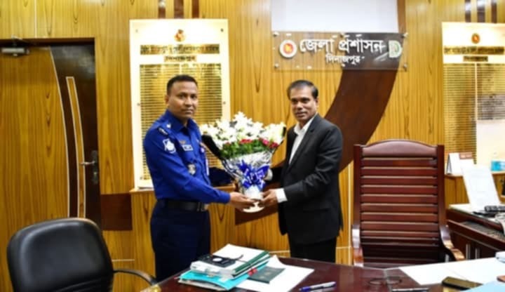 নবাগত পুলিশ সুপার জনাব মোঃ মারুফাত হুসাইন মহোদয় দিনাজপুর জেলা প্রশাসক ও জেলা ম্যাজিস্ট্রেট, জনাব মোঃ রফিকুল ইসলাম মহোদয়ের সাথে সৌজন্য সাক্ষাৎ পূর্বক বুধবার ফুলের শুভেচ্ছা বিনিময় করেন।