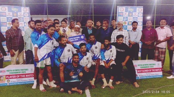 আব্দুল্লাহ মুনতাহিন ফাউন্ডেশন কর্তৃক আয়োজিত পটিয়া অলিম্পিক ফুটবল টুর্নামেন্ট ২০২৫মোমেনুল ইসলাম অভির পৃষ্ঠপোষকতাই ফাইনাল খেলায় প্রধান বক্তা ছিলেন নগর ছাএদলের সাবেক সভাপতি গাজী সিরাজ উল্লা, উক্ত খেলায় উসমান পাড়া স্পোর্টিং ক্লাব -এ বি চ্যালেঞ্জার্স পরাজিত করে ওসমান পাড়া স্পোটিং ক্লাব চ্যাম্পিয়ান হওয়ার গৌরব অর্জন করেন। এতে অনন্য মধ্যে উপস্থিত ছিলেন পটিয়া উপজেলা বিএনপির সাবেক সভাপতি জাহাঙ্গীর কবির, সাবেক যুগ্ম সম্পাদক নাছির উদ্দীন, কলিমুল্লা চৌধুরী, সাবেক কমিশনার মোহাম্মদ ইব্রাহিম, আবু জাফর চৌধুরী, জসিম উদ্দিন, জাফর ফারুকী, এস এম সুমন, জাহেদুল হক মেম্বার, এম এ রুবেল প্রমুখ।