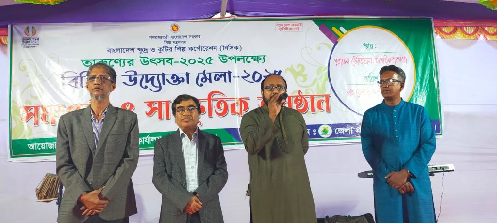 তিনি আরও বলেন, ‘১৯ ফেব্রুয়ারি থেকে শহরের পুরাতন স্টেডিয়ামে জেলা প্রশাসনের সহযোগিতায় আমরা মেলার আয়োজন করি। এই মেলায় পাটজাত, চামড়াজাত পণ্য, পোশাক, ডিজাইন ও ফ্যাশনওয়্যার, হ্যান্ডিক্রাফটস্, মৃৎশিল্প, কসমেটিক্স, গৃহস্থালী পণ্য, লাইট ইঞ্জিনিয়ারিং পণ্য এবং অন্যান্য সেক্টরের স্বদেশী পণ্যের সমাহার ঘটে। শুক্রবার রাতে মেলা সমাপ্ত হয়েছে।’