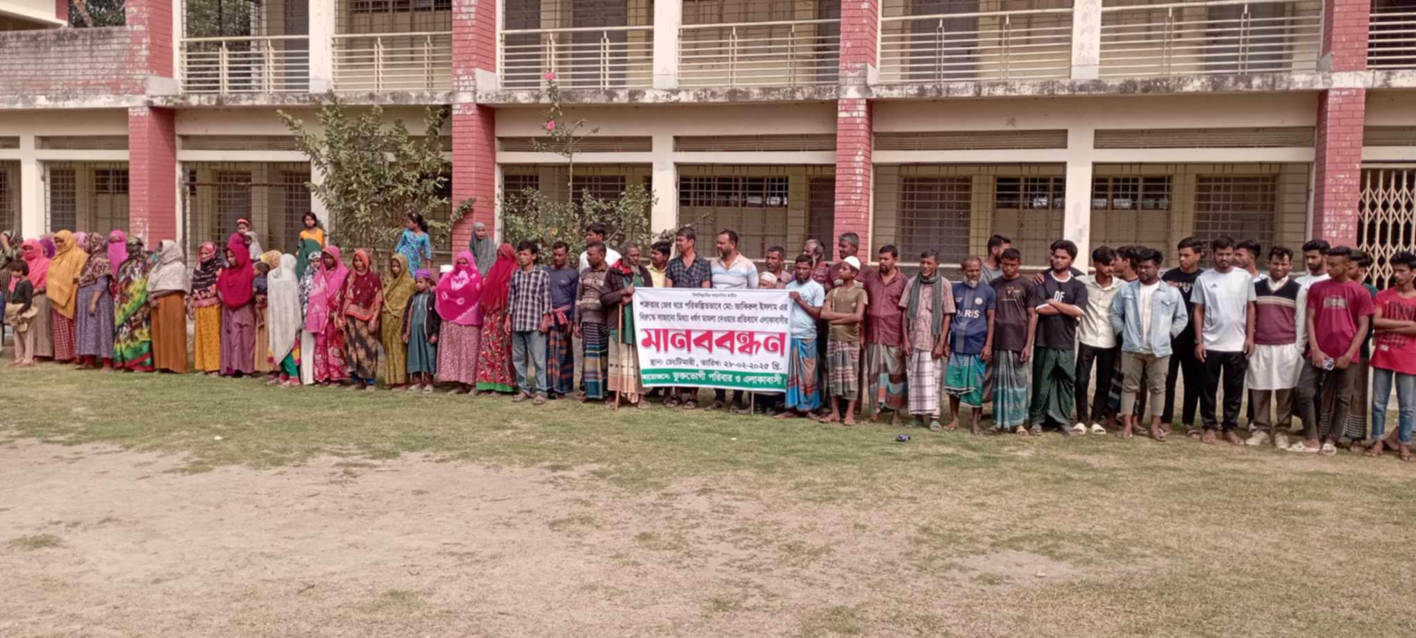 শুক্রবার ২৮( ফেব্রুয়ারি) ভূক্তভোগী পরিবার ও এলাকাবাসীর ব্যানারে উপজেলার চেংটিমারী মিতালী সরকারি প্রাথমিক বিদ্যালয় মাঠে এ মানববন্ধন ও বিক্ষোভ অনুষ্ঠিত হয়।