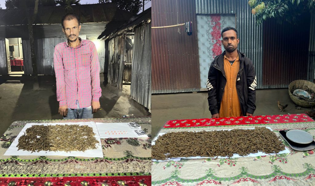 আকটকৃতরা হলেন, বাছড়া মন্ডলপাড়া এলাকার আতাউর রহমানের ছেলে গণি মিয়া(৩৪) ও গকুলা গ্রামের মৃত: আফসার আলী ছেলে শরিফুল ইসলাম (৩২)। তারা দীর্ঘদিন ধরে মাদক ব্যবসা চালিয়ে আসছিল।
