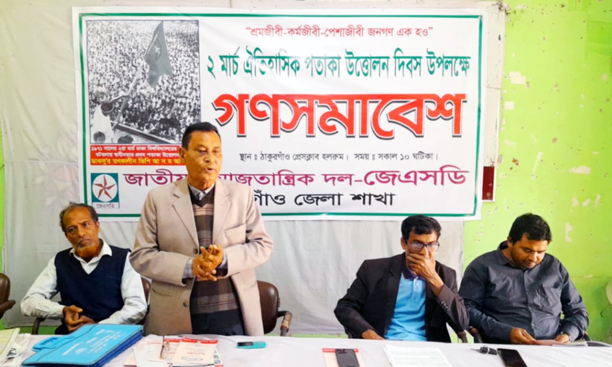 ২রা মার্চ ঐতিহাসিক পতাকা উত্তোলন দিবস উপলক্ষে ঠাকুরগাঁওয়ে জাতীয় সমাজতান্ত্রিক দল-জেএসডি’র গণসমাবেশ অনুষ্ঠিত হয়।