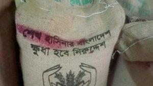 টিসিবি’র পণ্য বহনে ব্যবহৃত বিগত স্বৈর-সরকারের “খুধা হবে নিরুদ্দেশ, শেখ হাসিনার বাংলাদেশ” স্লোগান সম্বলিত বস্তার বিষয়ে বর্তমানে সরকারীভাবে সুনিদৃষ্ট বিধি নিষেধ থাকলেও তা মানা হচ্ছেনা জেলার বিভিন্ন ডিলার পয়েন্টেই। গত দুদিন ধরেই এমন দৃশ্যের দেখা মিলছে ঠাকুরগাঁওয়ের রুহিয়া এলাকার টিসিবির পন্য বিতরণী পয়েন্টে।